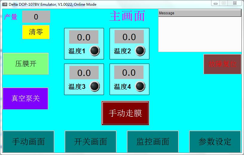 ②點擊“壓膜”按鍵,壓膜氣缸動作;點擊“真空泵”按鍵,打開真空泵: