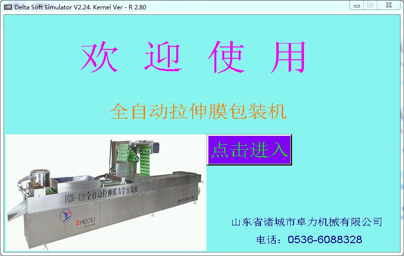 1、給真空包裝機(jī)供電以后,稍等片刻人機(jī)界面就會(huì)顯示“開始畫面”。“開始畫面”包含設(shè)備名稱、公司信息等,在中間位置出現(xiàn)一個(gè)【點(diǎn)擊進(jìn)入】觸摸鍵。